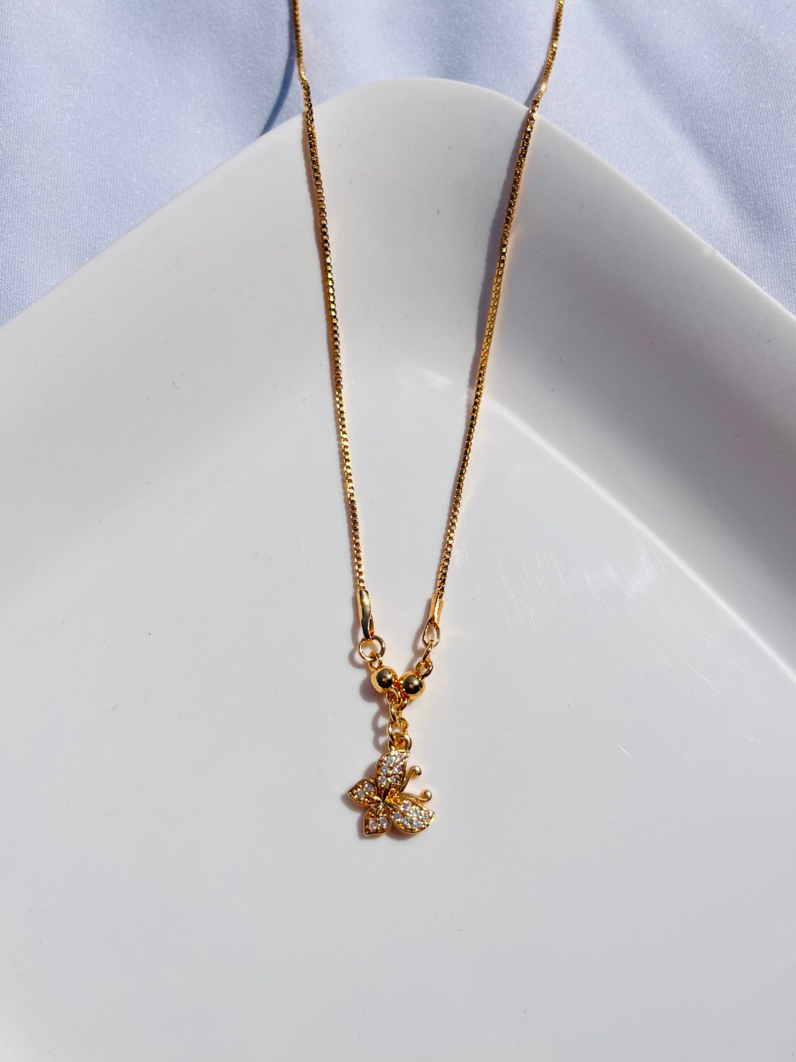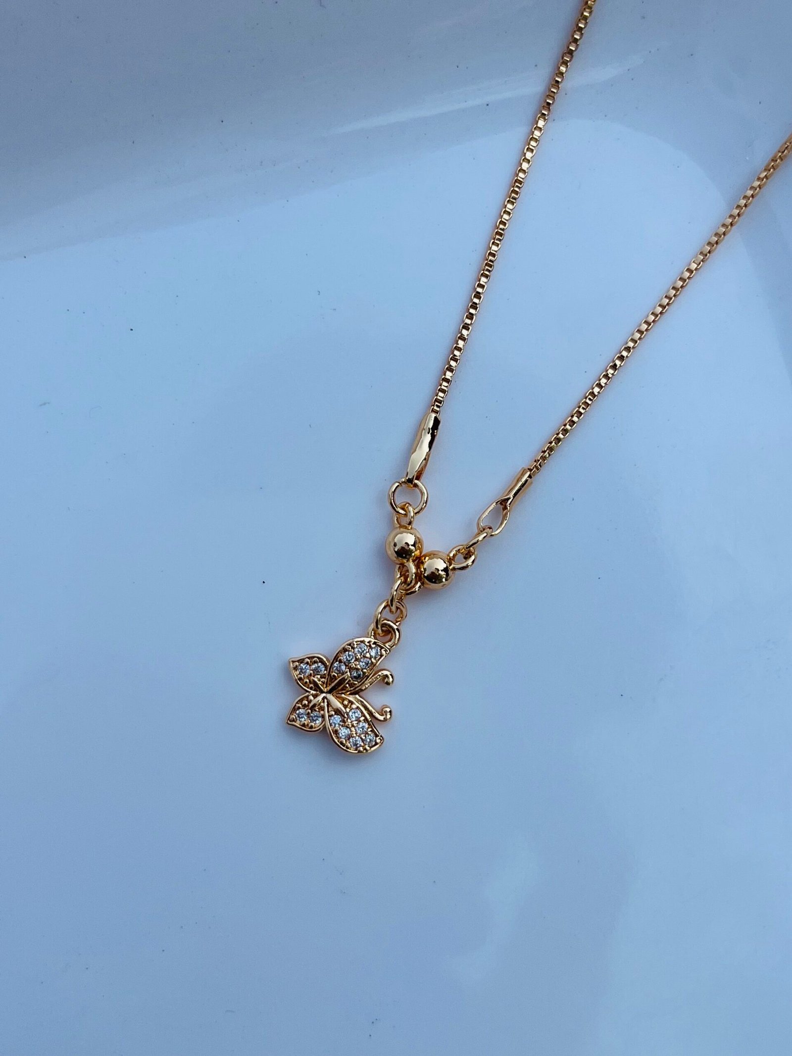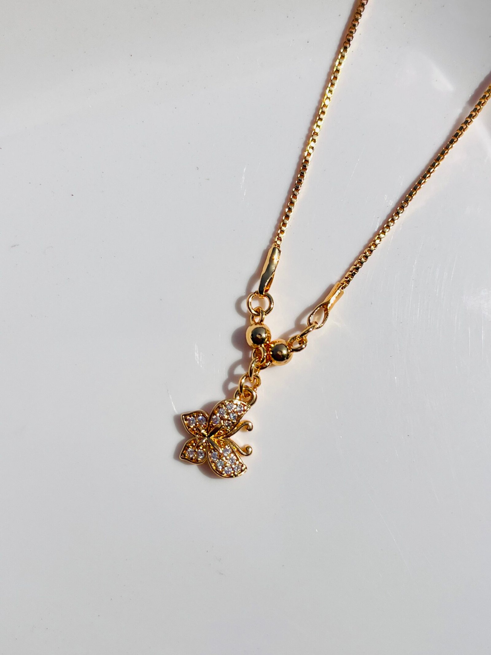 The Golden Butterfly Grace Pendant is a delicate and enchanting piece, symbolizing transformation, freedom, and beauty. Adorned with shimmering stones, this butterfly-shaped charm exudes elegance and grace, making it the perfect accessory for those who embrace change and new beginnings. Crafted with precision and a radiant gold finish, this pendant adds a touch of sophistication to any outfit.